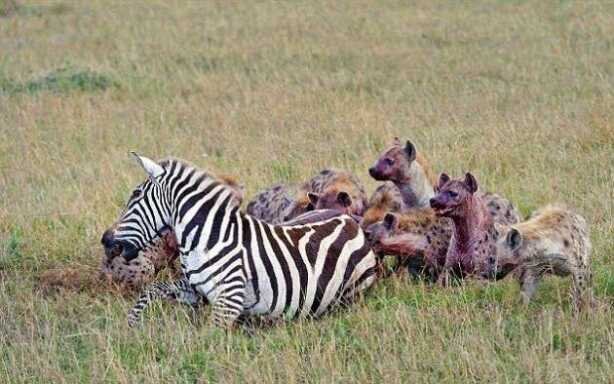 Sırtlanlar hamile zebraya saldırdı